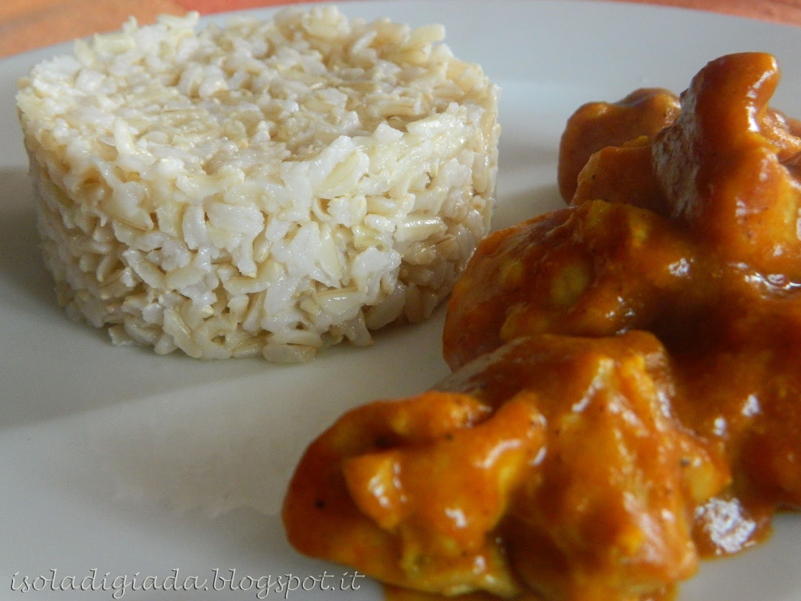 Periodo di cene natalizie! Noi siamo pieni di impegni in questa settimana, stasera cena di reparto con le colleghe, domani cena di classe con ex compagni del liceo... Insomma, ogni sera è giusta per festeggiare l'arrivo delle feste. Molto spesso si invitano ospiti a casa e non si sa mai cosa preparare. Quanto al primo ci si arrangia sempre, una pasta con un po' di verdura e via... Poi arrivati al secondo si apre il dilemma. I secondi normalmente sono elaborati e lunghi da preparare, noi abbiamo sempre meno tempo e quindi spesso si finisce con fare due o tre antipasti, il primo e volare direttamente al dolce. Questo piattino semplice si colloca proprio lì: tra il primo e il dolce, è semplice da preparare e ha un gusto esotico che accomuna molti palati, diverso dal solito e un po' piccante. A me piace molto. Si abbina bene al riso basmati, ho trovato la versione integrale e mi ha subito stuzzicato, spero piaccia anche a voi. Vi saluto con affetto e vi aspetto per il prossimo post pre-Natalizio con dei biscottini per le feste: Ciao a tutti!!!